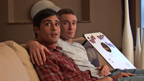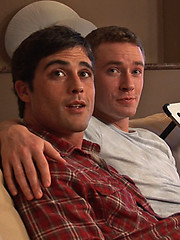 Hard dicked studs Lance and Ethan get busy with blowjobs and an ass fucking on the couch