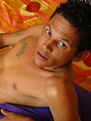 Hot Latino Victor shows his bronze skinned body while jerking his twink cock