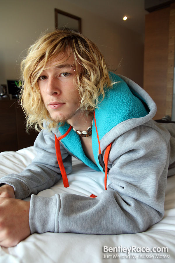 Long haired blonde twink Eligh Rainer jerks his throbbing boner