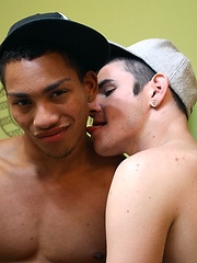 Dark skinned Latino pounds his twink buddy in the throat and the asshole