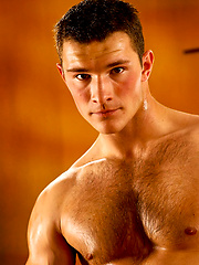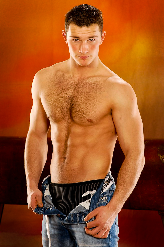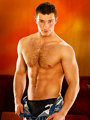 Muscle man shows his perfect hairy ches and uncut boner