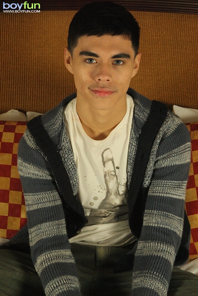 Ethnic boy Alec pulls cock out from his car print briefs.